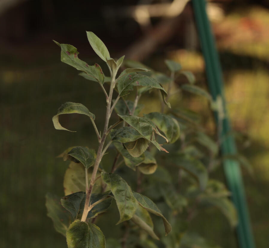 AAX 10 is one of three small trees that grew under the original Schoolbus tree, and is presumed to be a seedling from that parent. Based on this, it is included as an experimental, while a proper tree is grown out to bearing. The sprout from which this came has grown up and died back numerous times, and seems to be both very sturdy, and very prone to various diseases. It will hopefully get by these once planted out of the understory.