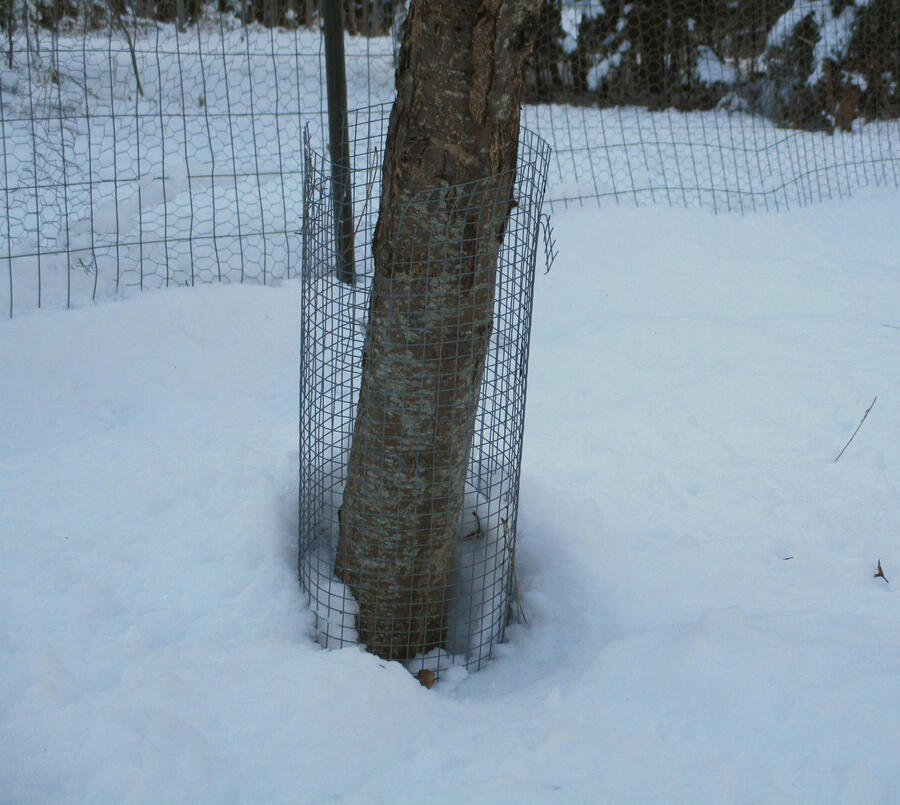 Rabbits are a smaller threat than the other two troublesome herbivores, but are still able to badly damage trees. The most common form of rabbit damage is gnawing on the main trunk at the snow line in winter. In many cases, this girdles the tree, killing everything above the gnawing. Rabbits often do not totally kill trees, but set them back by years, as the tree has to completely regrow. Defenses against rabbits are fences, or various forms of trunk guards. Fences only work against large, fully grown rabbits, making them only partially effective. Tree wraps and trunk guards are universally successful against rabbits, but must extend above the snow line.